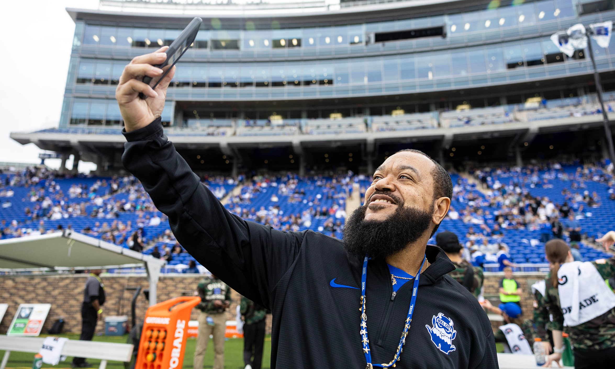 On Saturday, he checked out the field prior to the game, enjoyed the pre-game tailgate and visited with Duke University President Vincent Price.