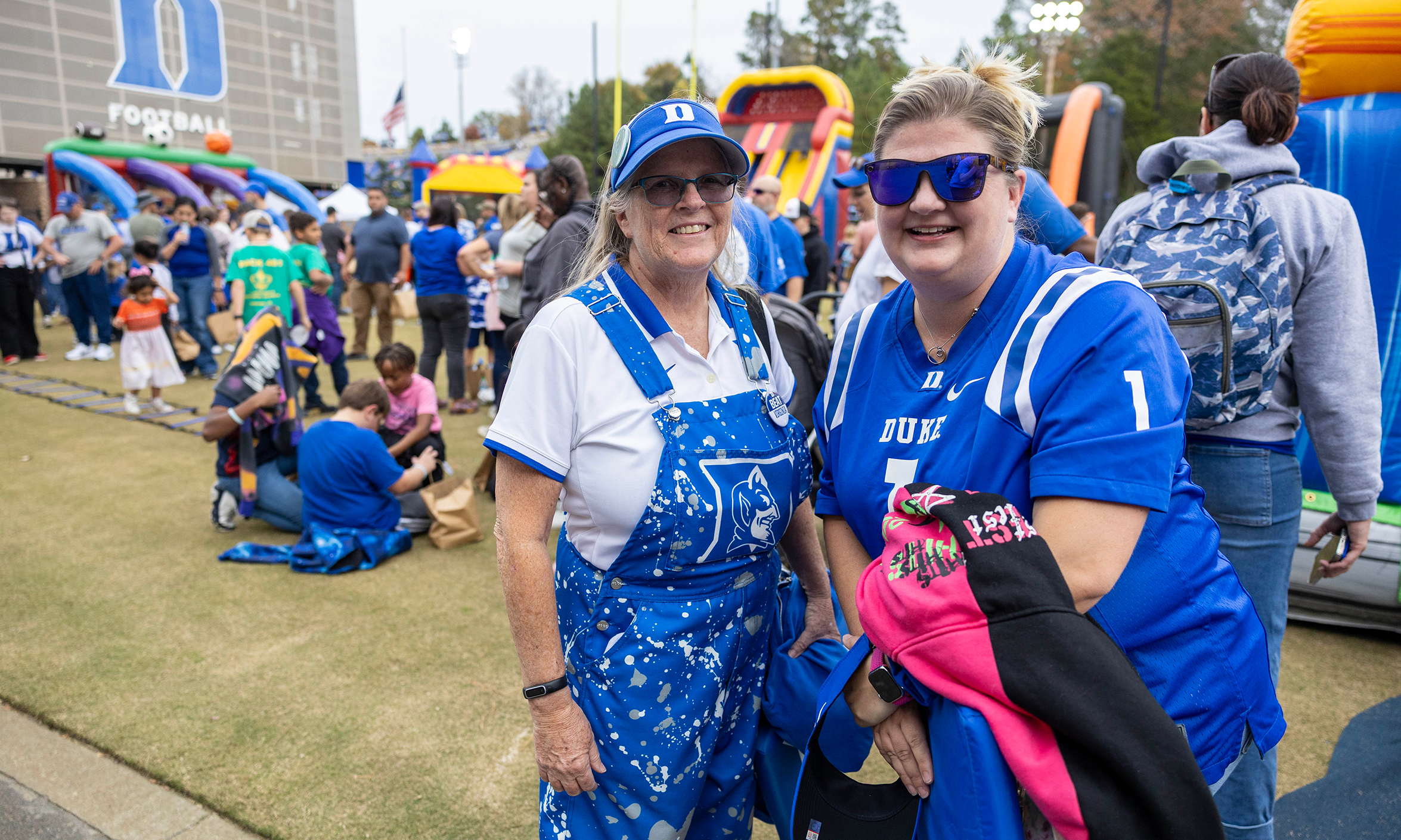 Lou Rutledge and Erin Dillard have probably missed only one Employee Appreciation Game in the past 15 years. Their ties to Duke are strong, with Rutledge earning her undergraduate degree at the university before spending 45 years working at Duke until she retired two years ago, and Dillard working at Duke for the past 21 years, now in Student Affairs.