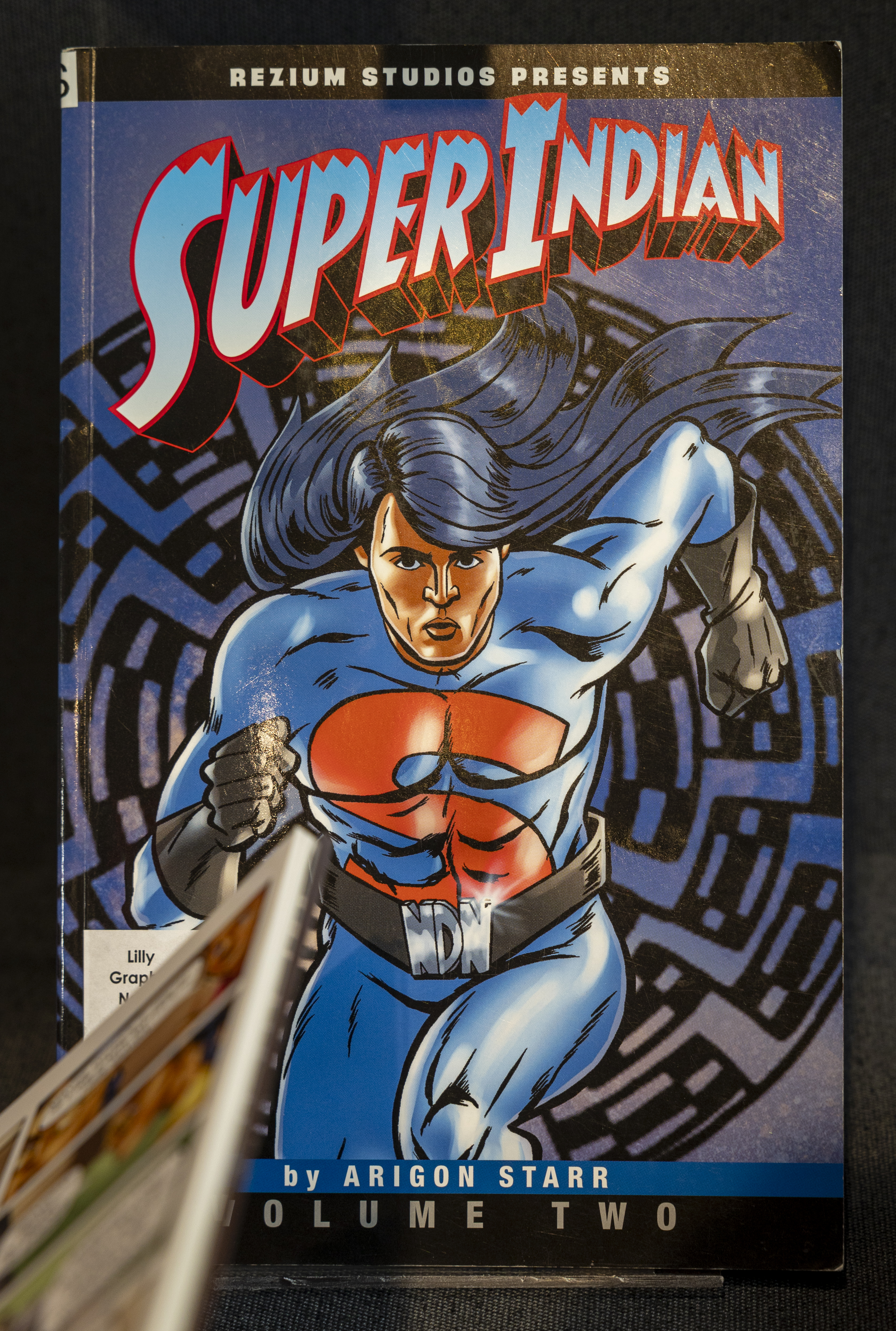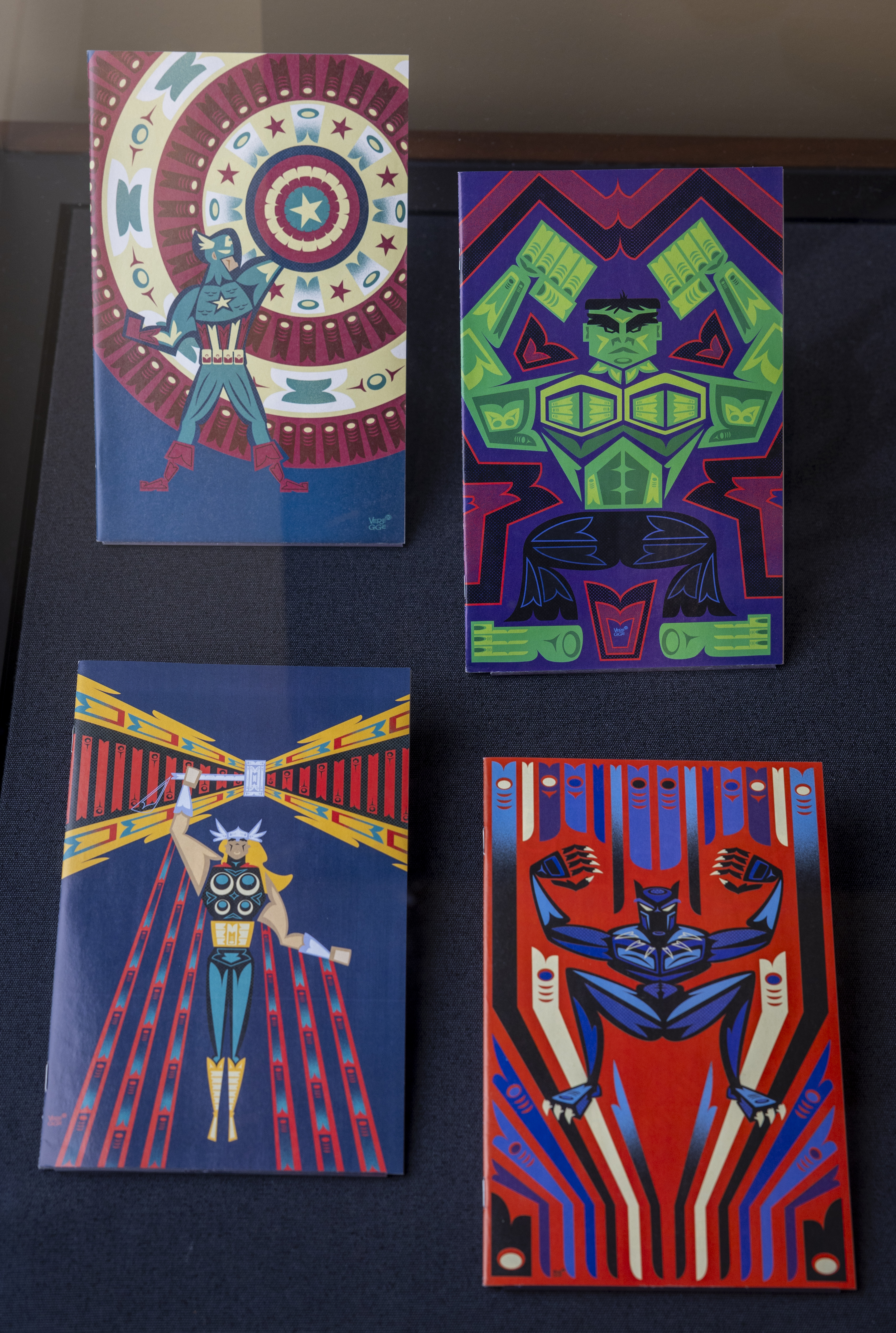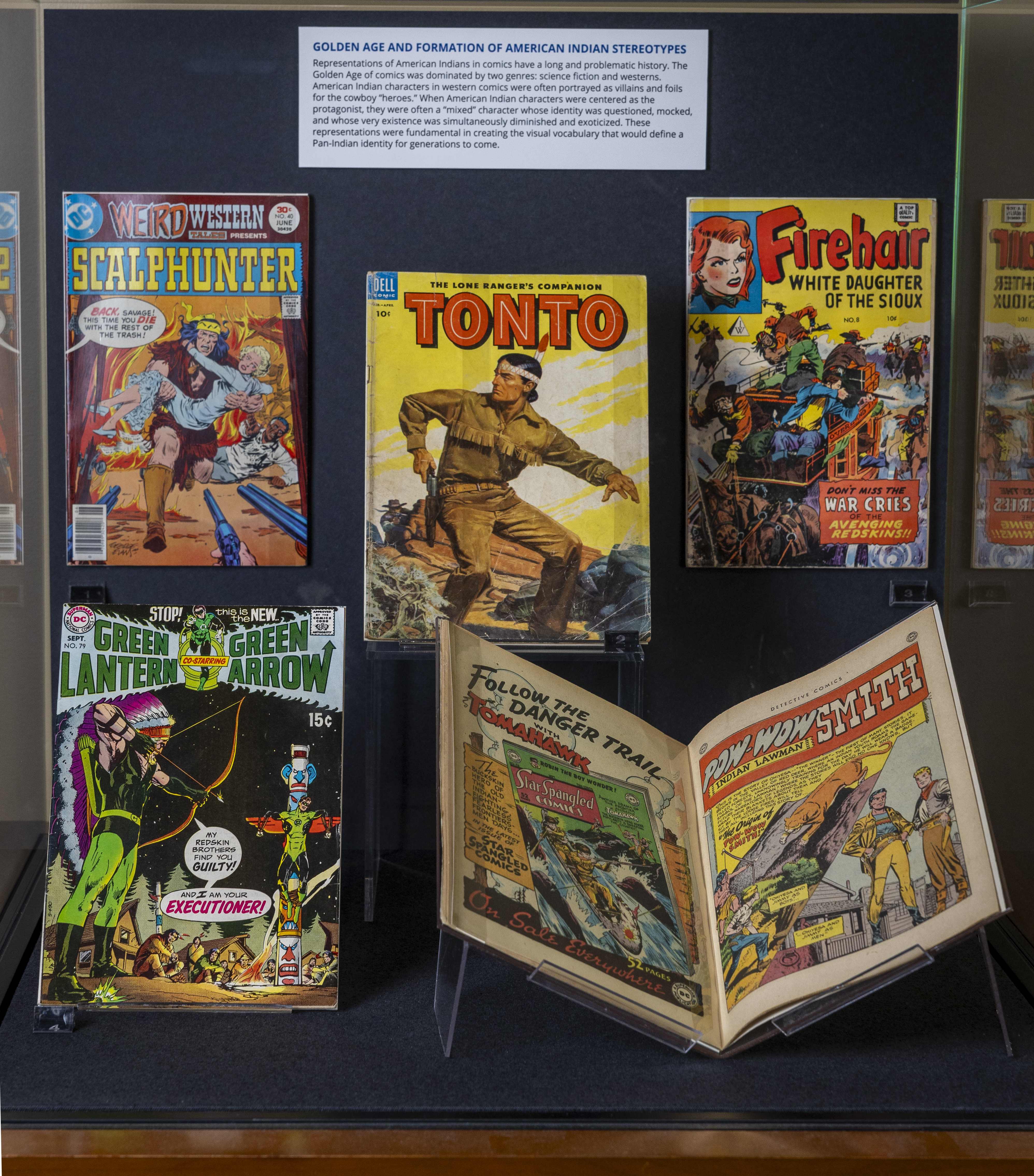 That is a very tough question, because, of course, I love all of the works that I chose for this exhibit. The one that touches my heart is the display for Jeffrey Vergge (Port Gamble Band of S’Klallam Indians citizen), who passed just a year and a half ago at a young age from lupus. His style is the most widely identifiable and distributed due to the work he did for Marvel covers. “Super Indian” (Arigon Starr, Kickapoo Tribe of Oklahoma citizen) was my first exposure to an American Indian created comic, so that is special to me as well.