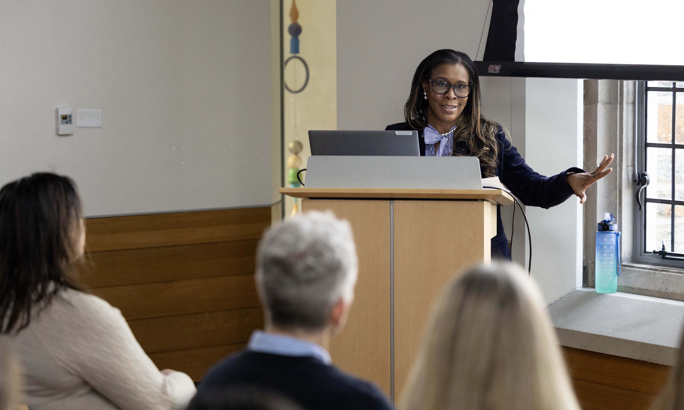 During the kickoff event, Duke Assistant Vice President for Learning & Organization Development Keisha Williams walked the cohort through the comprehensive evaluations, individual coaching, coursework and team projects that create the journey.